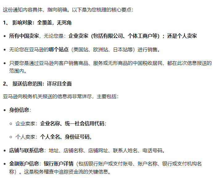 通知明确宣布:自2025年10月起,亚马逊将按季度向中国税务机关报送所有中国卖家的相关交易信息
