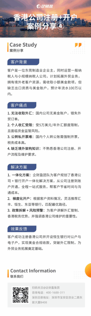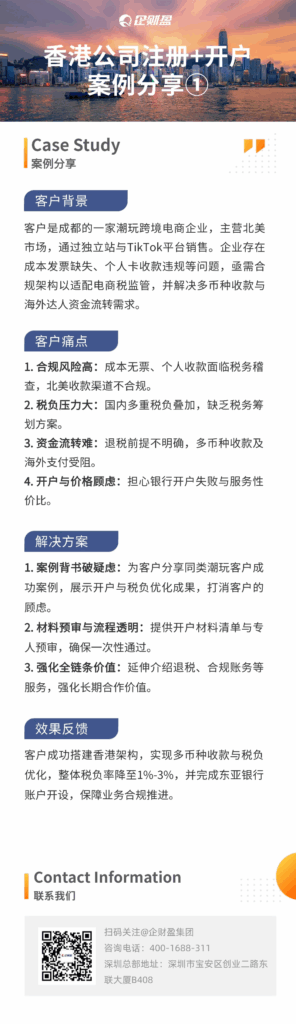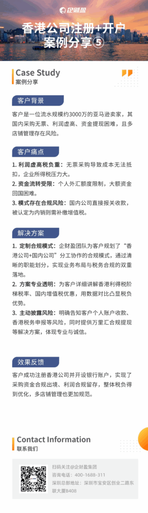 【企财盈结合近期服务的5个真实客户案例,带您了解不同行业与模式下,如何利用香港公司实现安全、高效、低成本的跨境经营与税务优化。】