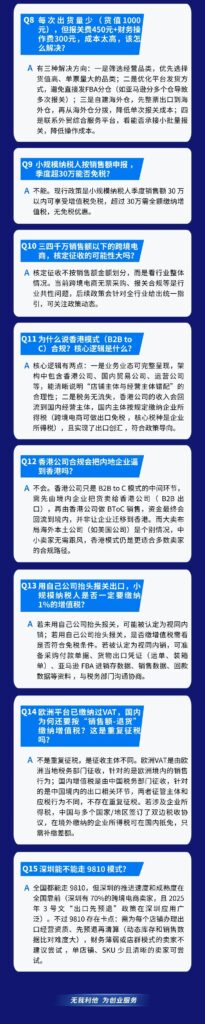 跨境电商合规已从 “可选项” 变为 “必选项”,每一个模糊地带都可能成为稽查突破口。建议卖家对照本期 15 个问题逐一自查,若仍有细节困惑,可关注企财盈后续 “合规 100 问” 系列!