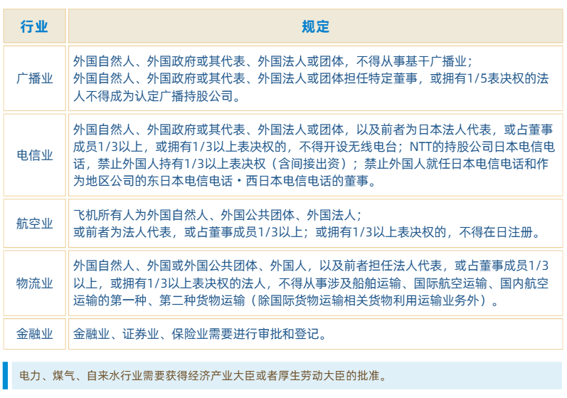 日本分行业对外资的限制和审查措施