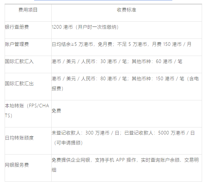 04 香港恒生银行开户资费标准(清晰透明,无隐藏费用)