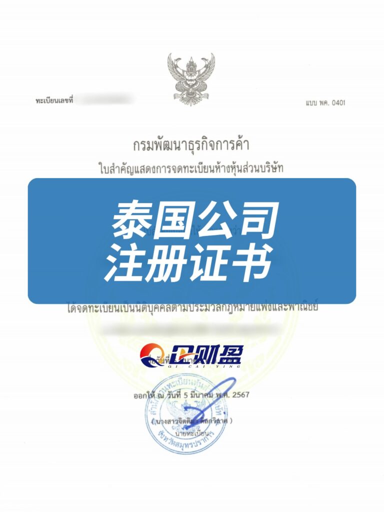 按照以上这些资料,给到我司企财盈委托办理注册泰国公司,后续就可以得到如上的泰国公司注册证书。