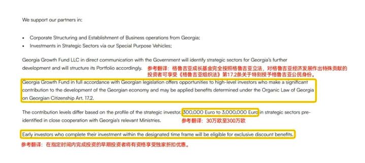 选项三:向格鲁吉亚成长基金贡献30万欧元(优惠期为25万欧元)。按特殊贡献计划要求,提供真实准确的资料和文件。