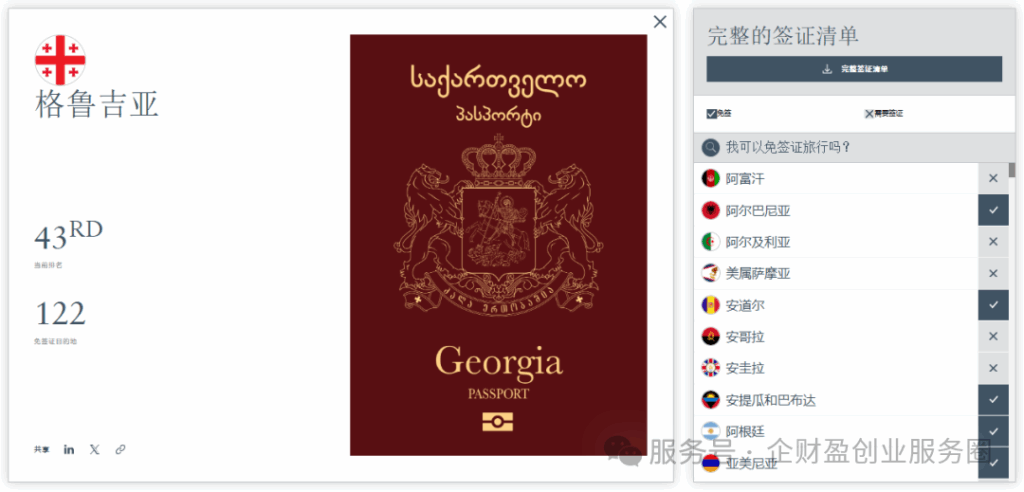 拿到格鲁吉亚的海外身份后,其格鲁吉亚护照可享受众多优势。