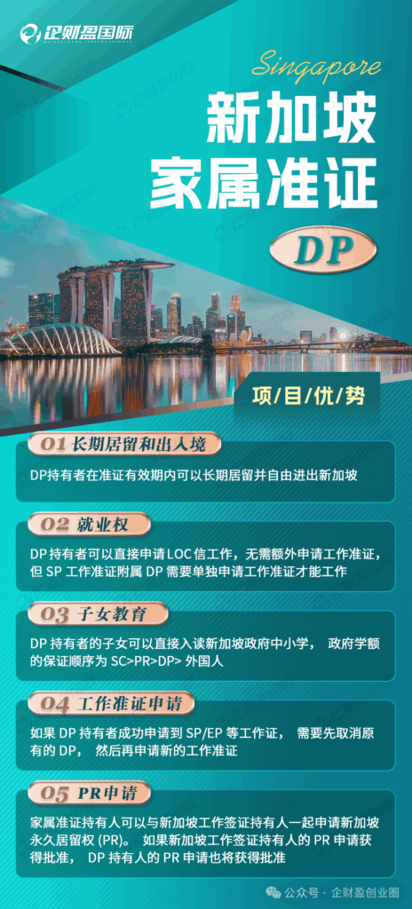 3)核心优势居留便利:EP 持有者可在新加坡合法居留,满 2 年后可申请永久居民(PR);家庭随迁:月薪达 6000 新元以上可申请家属准证(DP),配偶及 21 岁以下子女可随行;灵活管理:无需受雇于其他企业,自主掌控公司运营与发展方向。