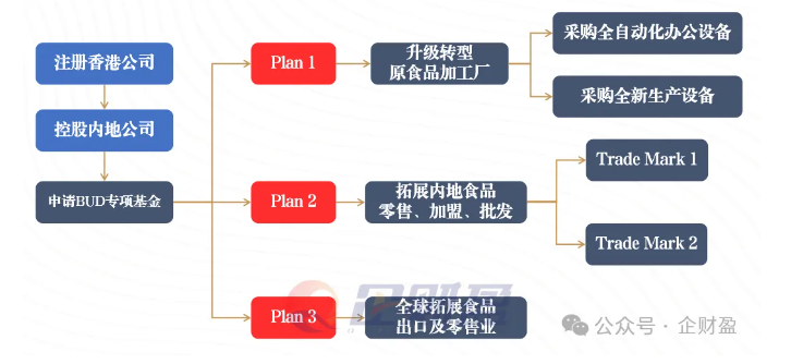 The client has a company in the Mainland, through the purchase of fully automated office equipment and production equipment to upgrade the transformation of the original food processing plant, to expand the mainland market, the registration of Hong Kong companies to hold the mainland company, and then apply for Hong Kong BUD special fund subsidies.