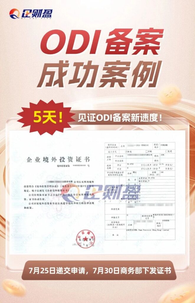 ODI filing is the "official passport" for Chinese enterprises to invest abroad. Without it, the capital can not go out, the project is difficult to land, and the profit is difficult to flow back. Recently, we have assisted many enterprises in the fields of science and technology, manufacturing, trade, etc. to efficiently complete the ODI filing and successfully promote their overseas projects!