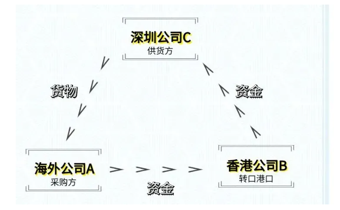 It is to register a Hong Kong company as a transit place, use the Hong Kong company and foreign customers to sign contracts as well as orders, and then through the name of the Hong Kong company from the domestic factory to buy goods.