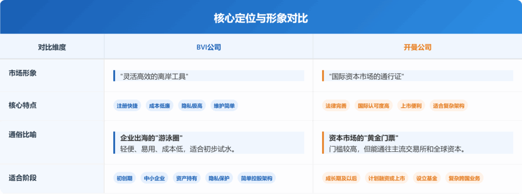 Both haveZero-tax environment, high privacy and the English common law systemThe positioning and application scenarios are very different. Which category you choose is not only about the initial cost, but also affects your future financing path, listing plan and compliance burden.