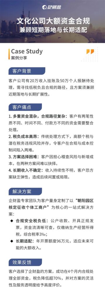 The expert team of Enterprise Caiying formulated the strategy of "combination of guidance and compliance reconstruction", introduced the model of "tax-financed self-employed", and provided supporting operational guidance: