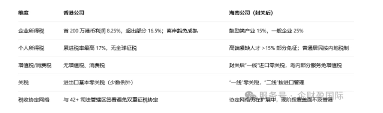 简言之,封关后的海南既是内地企业链接全球的成本洼地,也是面向 RCEP、“一带一路”市场的战略支点。那么,回到最初的问题,我们到底是把公司设在海南,还是放在香港呢?从以下几个角度来分析