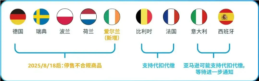The core objectives of the EU EPR areReducing waste generation and increasing resource recycling ratesCoveragePackaging, electrical and electronic equipment (WEEE), batteries, textiles, tires, furniture, toysand other product categories. Key directives include: 1) Packaging and Packaging Waste Directive (PPWD): requires member states to set packaging recycling targets (65% in 2025, 70% in 2030). 2) Waste Electrical and Electronic Equipment Directive (WEEE): requires member states to set up recycling systems for e-waste (recycling rate 45% in 2023, 55% in 2027). 3) Batteries Directive (2006/66/EC) and the revised New Batteries Regulation in 2023: requires battery producers to assume responsibility for recycling (45% in 2030). 55%).3) Batteries Directive (2006/66/EC) and the revised New Batteries Regulation in 2023: requires battery producers to take responsibility for recycling (recycling rate of 65% for portable batteries in 2030).4) Textile Strategy (2022): promotes EPR legislation for textiles (expected to be in place from 2025). Summary: such as Amazon and other mainstream platforms require mandatory registration of battery law in the EU countries: Germany, Poland, Sweden, the Netherlands, Ireland. Countries with autonomous registration options are France, Italy, Spain, Belgium. Will be explored in the third part of the independent registration of the French EPR or the platform on behalf of the more economical.